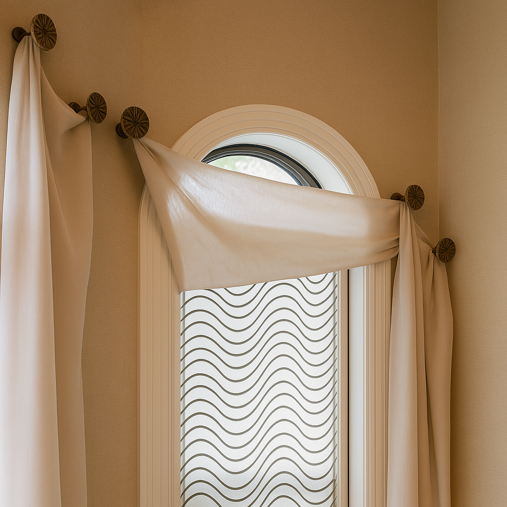 How hardware functions also affects how a room feels. Medallions used as primary mounting points allow for fabric to be arranged in swags, layered panels, or sculptural compositions that feel deliberate and architectural. This approach removes the visual heaviness of a long horizontal rod and introduces more flexibility in how the window treatment is styled.