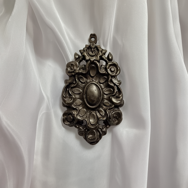 The Imperial Crest Drapery Medallion brings strength, beauty, and handcrafted detail to your window décor. Made from solid iron with a durable two-part mounting system, this medallion securely supports drapery panels, swags, and holdbacks. Perfect for replacing rods or adding decorative accents, it offers timeless style and long-lasting performance for any interior. Its rich finish pairs beautifully with sheer or heavy drapery, making it a versatile choice for sophisticated interiors. Its 6-3/4″ H x 4″ W make it a statement piece, it transforms simple drapery into a refined design feature.
