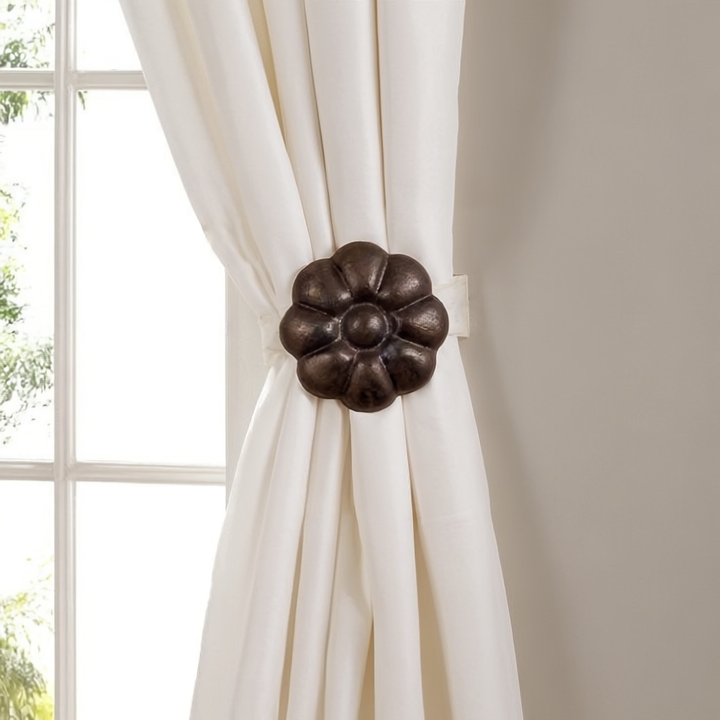 Measuring a delightful 2 inches in diameter, this charming little flower medallion is the perfect blend of style and function. Say goodbye to boring drapery rods and hello to a whole new way to dress your windows!