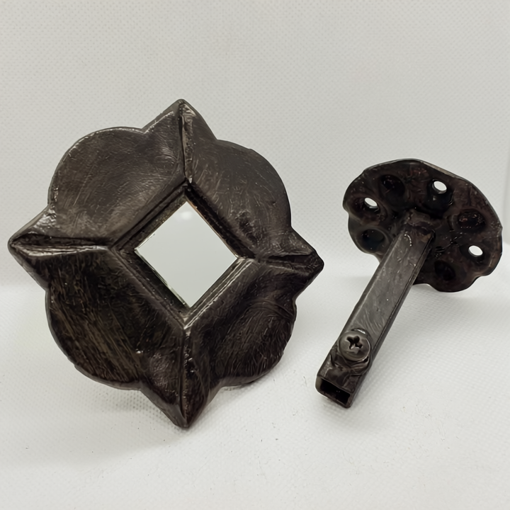 Say hello to the Traditional Stunning Drapery Medallion—your stylish and elegant alternative to traditional curtain rods. These medallions bring a touch of sophistication to any room, turning your window treatments into bold statements of luxury and creativity. Whether you’re swaging, slouching, or elegantly draping your curtains, these solid iron medallions are sure to elevate the aesthetic of your space. But there's an unexpected addition to the center of this 4" beauty! It's a mirror! Yes a mirror. Have you ever seen how a little mirror can bounce the light around your beautiful room. Add these beauties to your window treatment and you will find out.